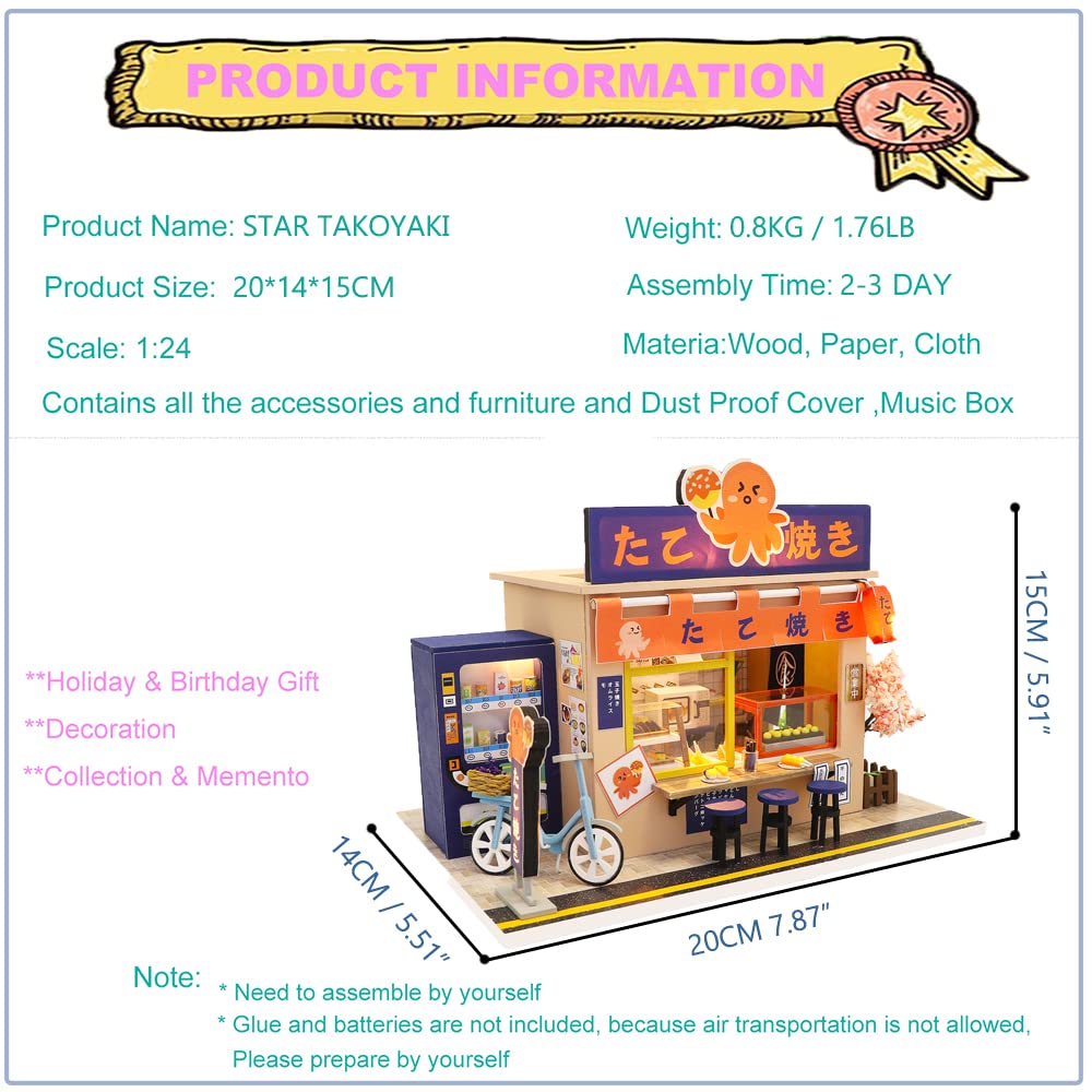 Amazon Com Dollhouse Miniature With Furniture Diy Wooden Doll House Kit Japanese Style Plus Dust Cover And Music Movement 1 24 Scale Creative Room Idea Best Gift For Children Friend Lover Star Takoyaki Toys