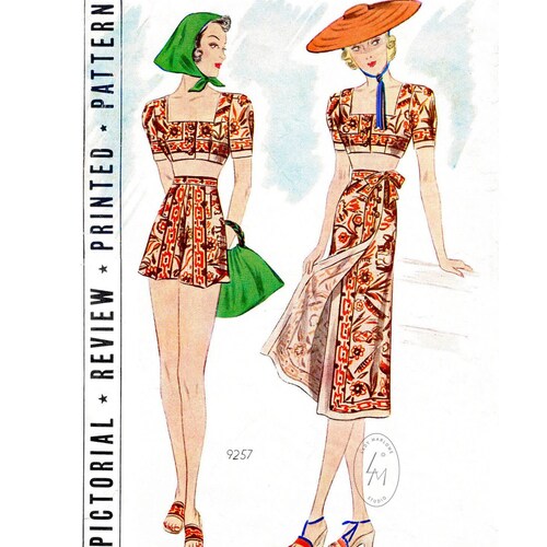 Vintage Sewing Pattern 1920s 1930s Beachwear Crop Top High Etsy